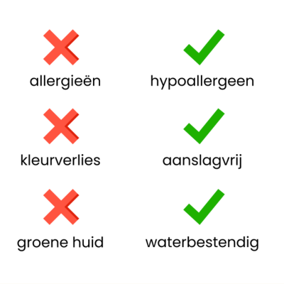 • Bestand tegen water, zweet en hitte. (Geen verkleuring, geen aanslag).