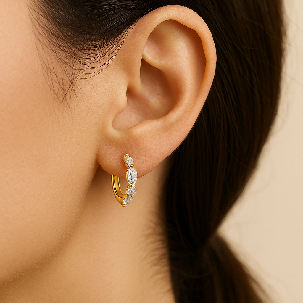 De AILA Diamanten Oorbellen | Goud zijn een elegante en verfijnde keuze met een luxueus ontwerp van marquise diamant simulanten die perfect zijn omlijst door het gouden montuur. Deze oorbellen voegen een vleugje glamour toe aan elke outfit, of het nu voor dagelijks gebruik of een speciale gelegenheid is.